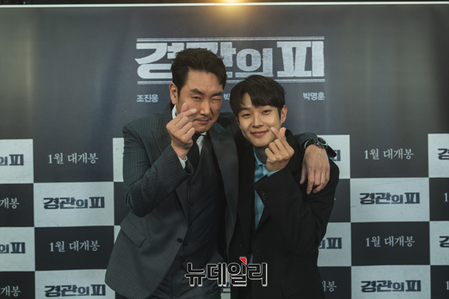 '경관의 피'는 출처 불명의 막대한 후원금을 받으며 독보적인 검거 실적을 자랑하는 광역수사대 반장 박강윤(조진웅)과 그를 비밀리에 감시하는 임무를 맡게 된 원칙주의자 경찰 최민재(최우식)의 위험한 수사를 다룬 영화다. 배우 조진웅, 최우식, 박희순, 권율, 박명훈 등이 출연한다. 2022년 1월 개봉. (사진=호호호비치)