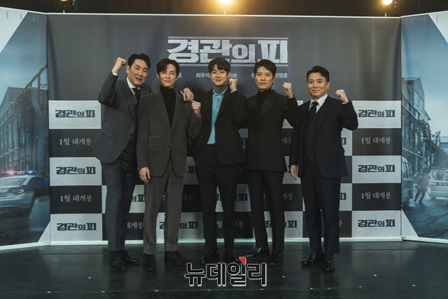 '경관의 피'는 출처 불명의 막대한 후원금을 받으며 독보적인 검거 실적을 자랑하는 광역수사대 반장 박강윤(조진웅)과 그를 비밀리에 감시하는 임무를 맡게 된 원칙주의자 경찰 최민재(최우식)의 위험한 수사를 다룬 영화다. 배우 조진웅, 최우식, 박희순, 권율, 박명훈 등이 출연한다. 2022년 1월 개봉. (사진=호호호비치) -