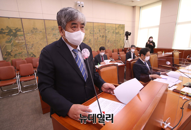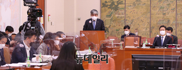 한상혁 방송통신위원장이 25일 국회에서 열린 언론미디어 제도개선 특별위원회 제2차 회의에 참석해 업무보고를 하고 있다. (사진=공동취재단)