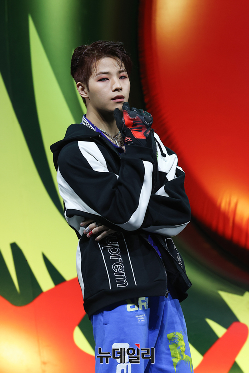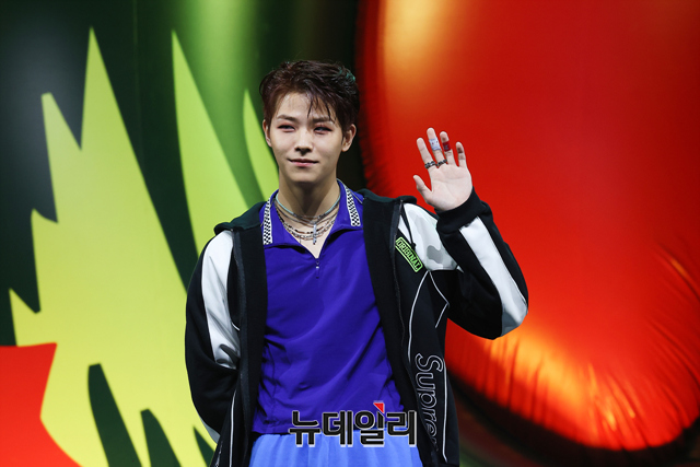 아이돌그룹 고스트나인 손준형이 25일 오후 서울 광진구 예스24 라이브홀에서 열린 새 미니앨범 '나우 : 후 위 아 페이싱(NOW : Who we are facing)' 발매 기념 쇼케이스에서 포즈를 취하고 있다.