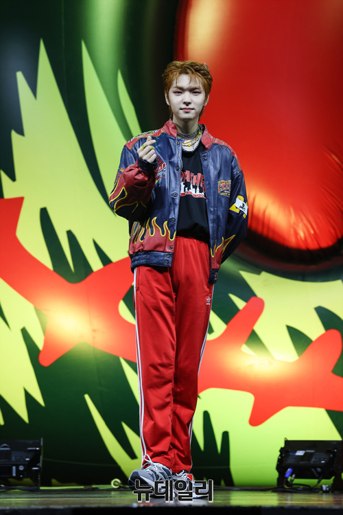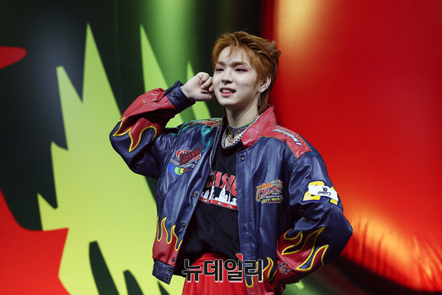 아이돌그룹 고스트나인 멤버 이강성이 25일 오후 서울 광진구 예스24 라이브홀에서 열린 새 미니앨범 '나우 : 후 위 아 페이싱(NOW : Who we are facing)' 발매 기념 쇼케이스에서 포즈를 취하고 있다.