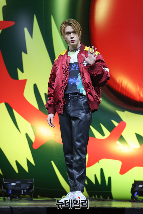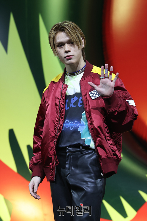 아이돌그룹 고스트나인 멤버 프린스가 25일 오후 서울 광진구 예스24 라이브홀에서 열린 새 미니앨범 '나우 : 후 위 아 페이싱(NOW : Who we are facing)' 발매 기념 쇼케이스에서 포즈를 취하고 있다.