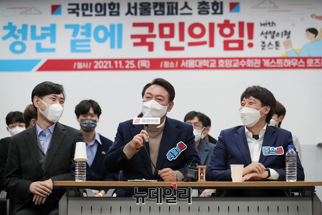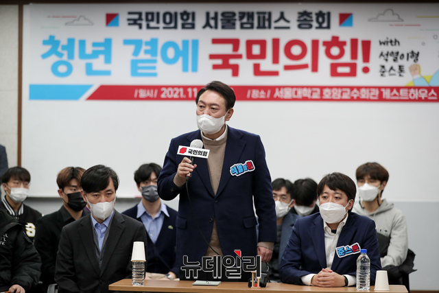 윤석열 국민의힘 대선 후보가 25일 오후 서울 관악구 서울대학교 호암교수회관 게스트하우스 로즈홀에서 열린 '국민의힘 서울캠퍼스 총회'에서 발언을 하고 있다. (사진=윤석열 캠프)