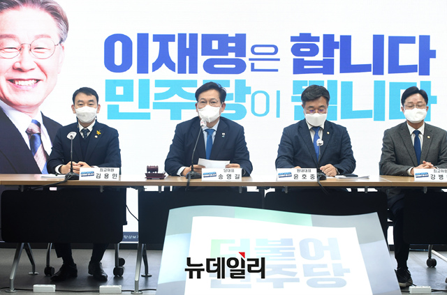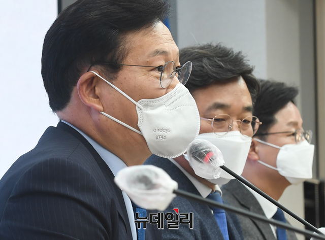 송영길 더불어민주당 대표가 26일 서울 여의도 더불어민주당 중앙당사에서 열린 최고위원회의에서 모두발언을 하고 있다. (사진=공동취재단)