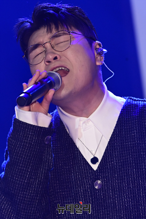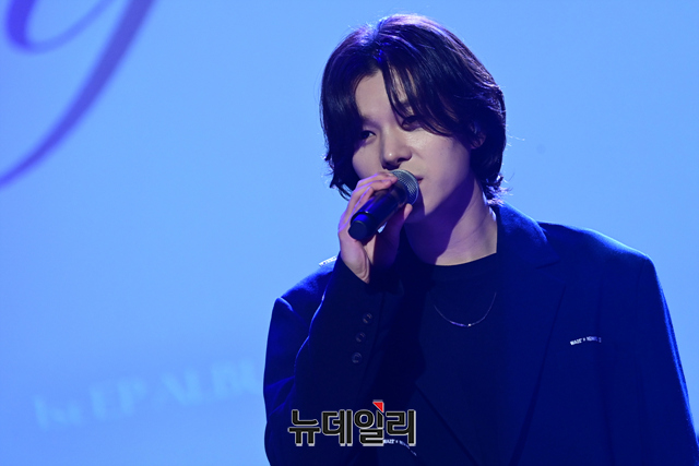 보컬 듀오 이프(2F) 멤버 신용재, 김원주(오른쪽)가 26일 오전 서울 강남구 일지아트홀에서 열린 첫 번째 EP '이프(if)' 발매 기념 쇼케이스에서 무대를 선보이고 있다.