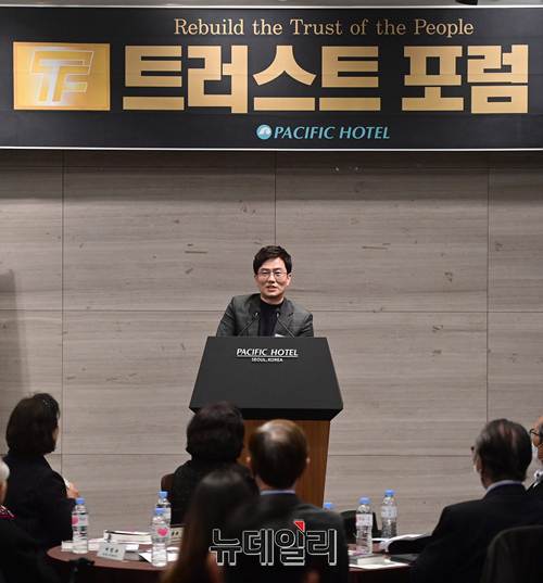 최대현 펜앤드마이크 부장이 26일 오후 서울 중구 퍼시픽호텔에서 열린 제7회 트러스트포럼에서 발언하고 있다.