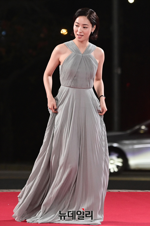 배우 전여빈이 26일 오후 서울 여의도 KBS홀에서 열린 제42회 청룡영화상 레드카펫 행사에서 포즈를 취하고 있다.