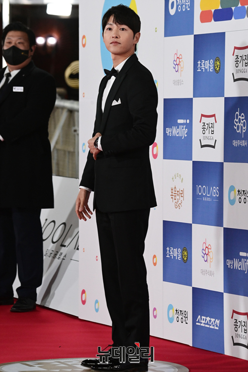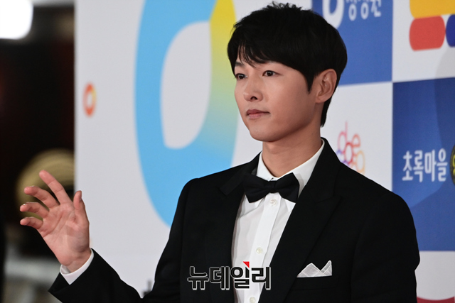 배우 송중기가 26일 오후 서울 여의도 KBS홀에서 열린 제42회 청룡영화상 레드카펫 행사에서 포즈를 취하고 있다.