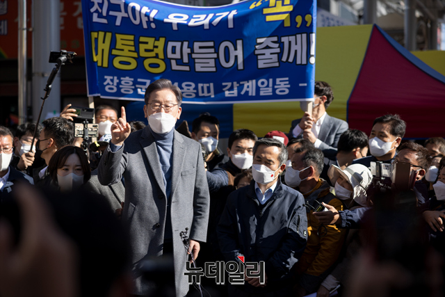 [포토] 정남진 장흥 토요시장 찾은 이재명 대선후보