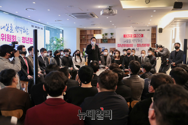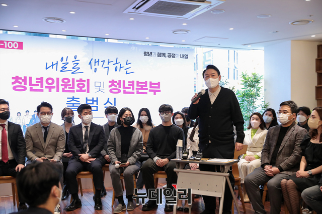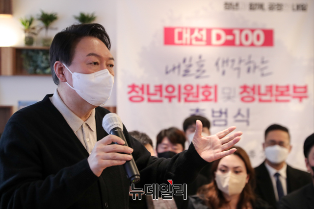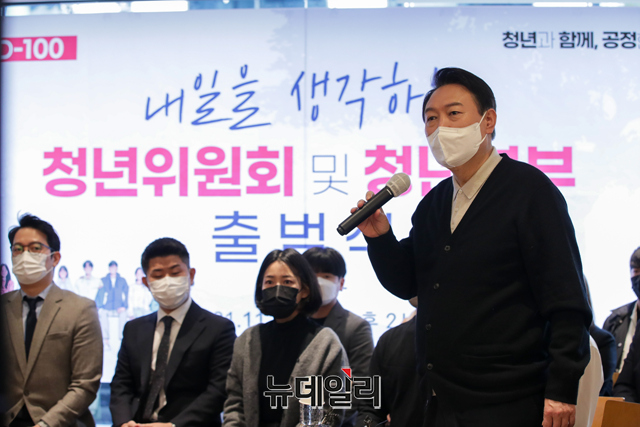 윤석열 국민의힘 대선 후보가 28일 오후 서울 여의도 하우스커피에서 진행된 내일을 생각하는 청년위원회 출범식에서 발언을 하고 있다. (사진=윤석열 캠프)