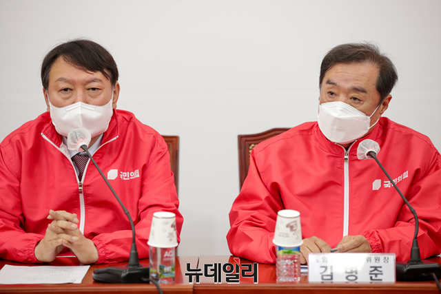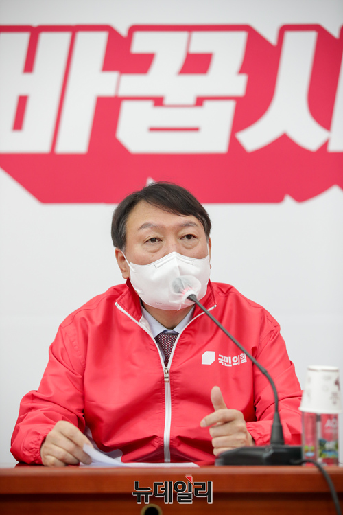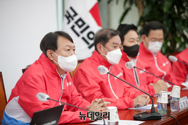 윤석열 국민의힘 대선후보가 29일 오전 서울 여의도 국회의사당에서 열린 선대위 회의에 참석해 발언하고 있다. 윤 후보는 이날 오후부터 김병준 선대위원장과 충청지역을 방문할 예정이다. (사진=윤석열 캠프)