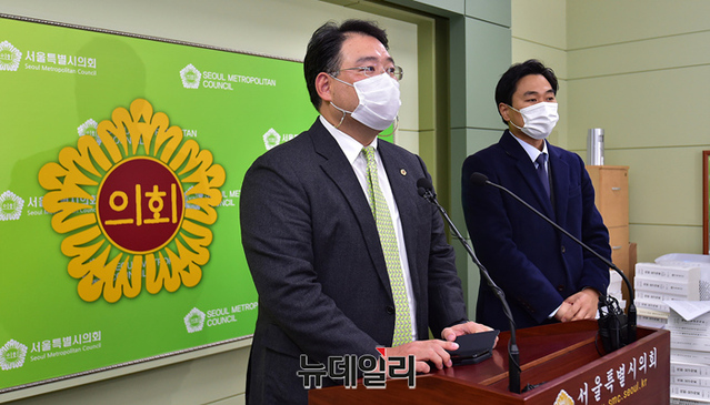 [포토] 서울시 예산 정상화 촉구 기자회견 참석한 이성배 시의원