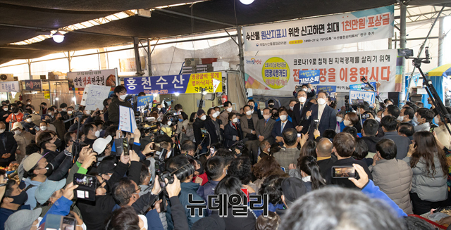[포토] 전남 영광터미널 시장 찾은 이재명