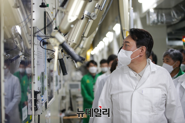 충청지역을 방문 중인 윤석열 국민의힘 대선 후보가 29일 오후 대전 유성구 대덕연구단지 내 한국원자력연구원 및 한전원자력연료를 방문해 시설물을 살펴보고 있다. (사진=윤석열 캠프)