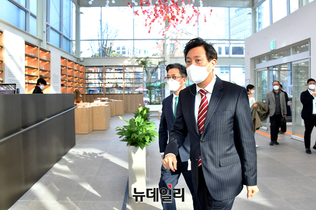오세훈 서울시장이 29일 오후 서울 종로구 서울공예박물관에서 진행된 개관식에서 축사를 하고 있다. 공예박물관은 서울시가 2만 3,000여 점의 공예작품을 소장하고 있다. 30일 정식 개관. (사진=서울시)
