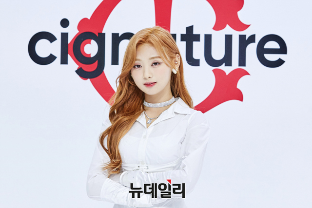 걸그룹 시그니처 멤버 벨이 30일 오후 온라인으로 열린 두 번째 EP 앨범 '디어 다이어리 모먼트(Dear Diary Moment)' 발매 기념 온라인 쇼케이스에서 포즈를 취하고 있다.