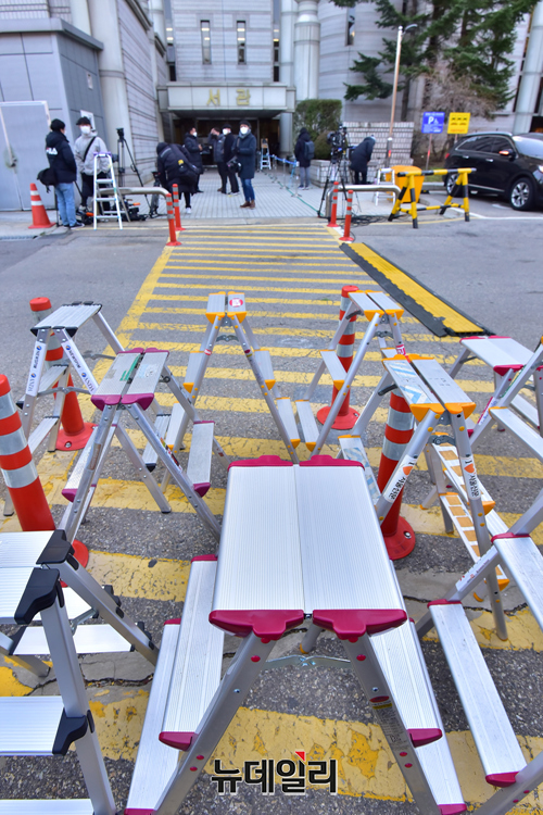 [포토] 곽상도 전 의원 영장심사 출석… 기다리는 취재진들