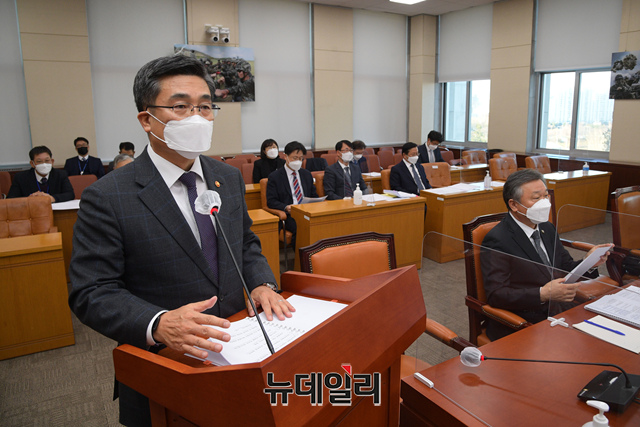 서욱 국방부 장관이 1일 오전 국회에서 열린 국방위원회 전체회의에서 법률안 심사에 대한 정부 측 인사말을 하고 있다. (사진=공동취재단)