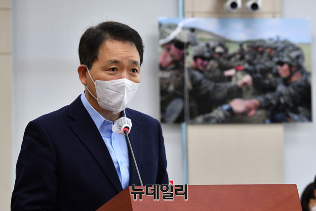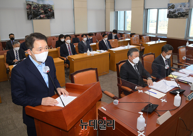 성일종 법률안심사소위원장이 1일 오전 국회에서 열린 국방위원회 전체회의에서 심사보고를 하고 있다. (사진=공동취재단)