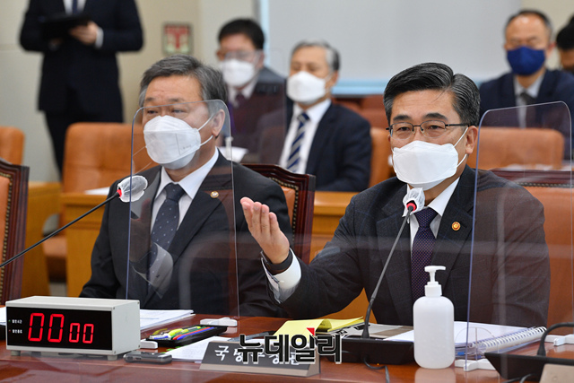서욱 국방부 장관이 1일 오전 국회에서 열린 국방위원회 전체회의에서 의원 질의에 답변하고 있다. (사진=공동취재단)