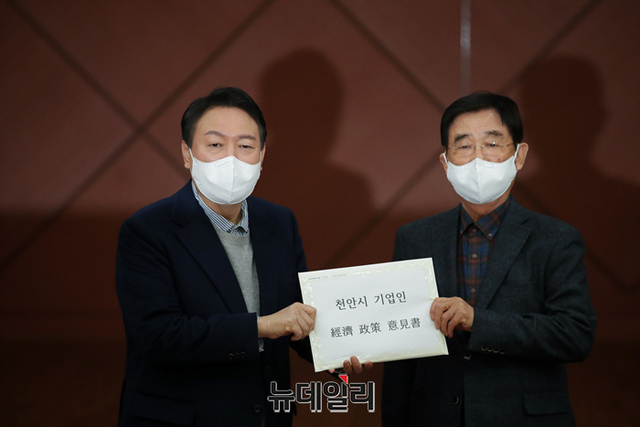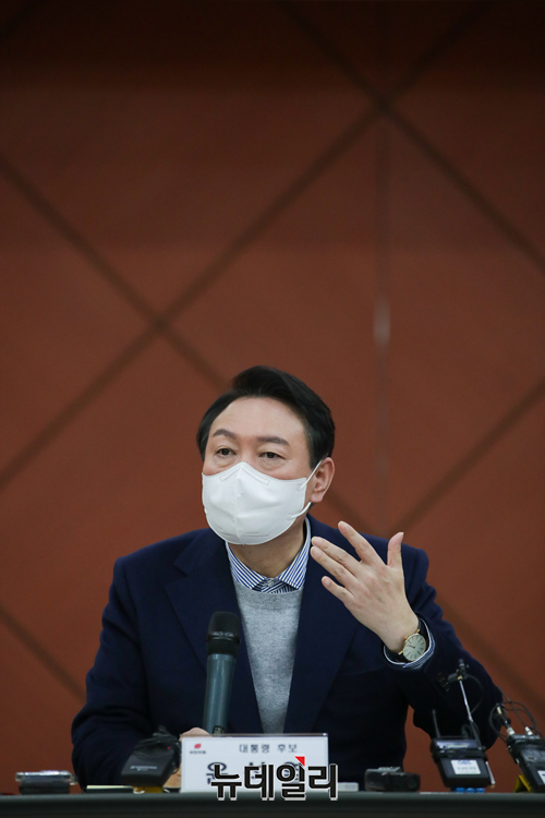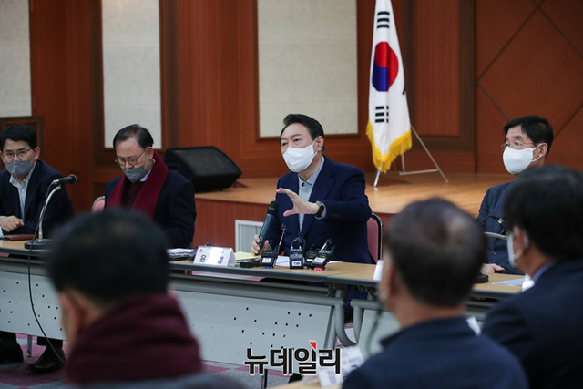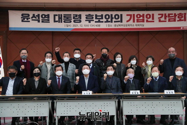 충청지역을 방문 중인 윤석열 국민의힘 대선 후보가 1일 오후 충남 천안시 충남북부상공회의소를 방문해 기업인들과 간담회를 갖고 있다. (사진=윤석열 캠프)