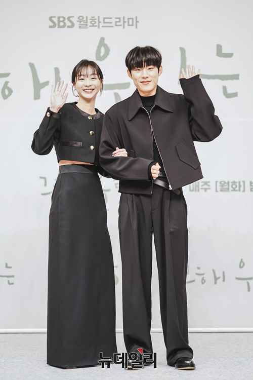 배우 김다미와 김성철이 1일 오후 서울 양천구 목동 SBS에서 열린 SBS 새 월화드라마 '그 해 우리는' 제작발표회에 참석해 포토타임을 갖고 있다.