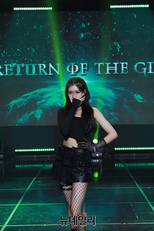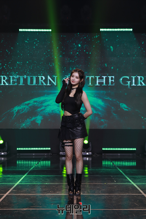 걸그룹 에버글로우 이런이 1일 오후 온라인으로 열린 3번째 미니앨범 'Return of The Girl(리턴 오브 더 걸)' 발매기념 쇼케이스에서 포토타임을 갖고 있다.이번 앨범은 멤버들의 애절한 보이스를 들을 수 있는 'Back Together(백 투게더)' 타이틀곡 'Pirate(파일럿)' 강렬한 사운드에 밝은 에너지를 담은 'Don’t Speak(돈 스피크)' 이상한 나라의 앨리스 토끼를 찾아 나서는 멤버들의 모습을 표현한 'Nighty Night(나이티 나잇)' 동료의 의미를 담은 단어를 에버글로우식으로 표현한 'Company(컴퍼니)'까지 총 5개의 트랙으로 꾸몄다. (사진=위에화엔터테인먼트)