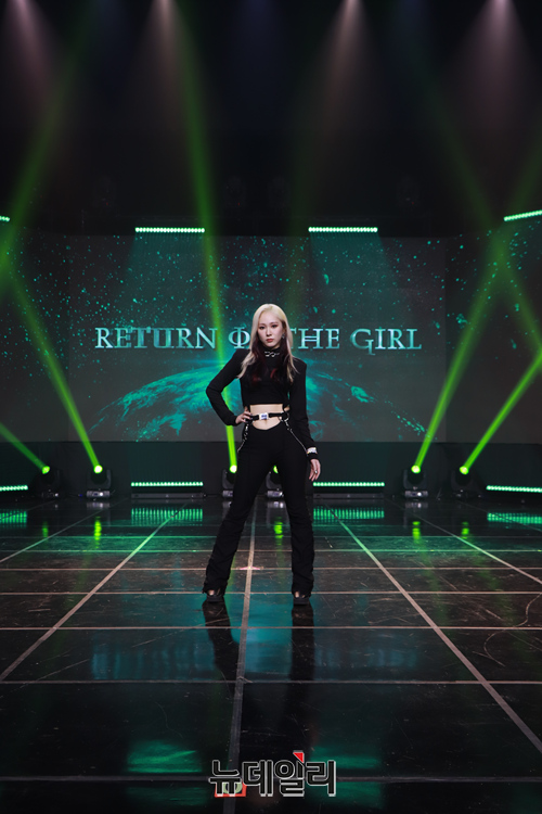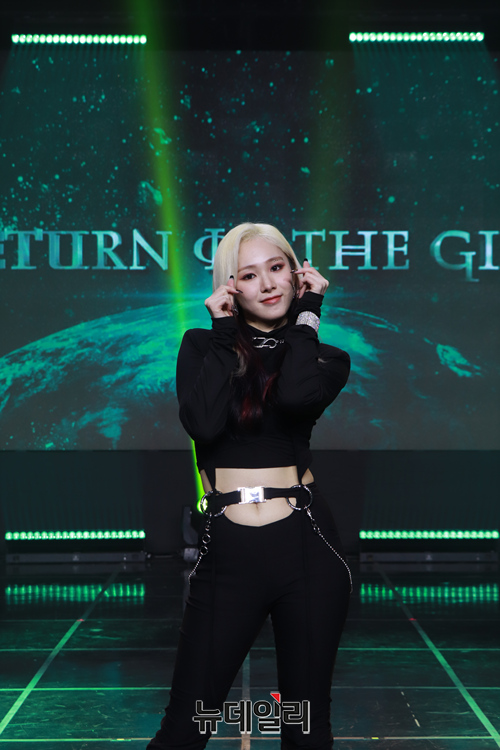 에버글로우 미아가 1일 오후 온라인으로 열린 3번째 미니앨범 'Return of The Girl(리턴 오브 더 걸)' 발매기념 쇼케이스에서 포토타임을 갖고 있다.이번 앨범은 멤버들의 애절한 보이스를 들을 수 있는 'Back Together(백 투게더)' 타이틀곡 'Pirate(파일럿)' 강렬한 사운드에 밝은 에너지를 담은 'Don’t Speak(돈 스피크)' 이상한 나라의 앨리스 토끼를 찾아 나서는 멤버들의 모습을 표현한 'Nighty Night(나이티 나잇)' 동료의 의미를 담은 단어를 에버글로우식으로 표현한 'Company(컴퍼니)'까지 총 5개의 트랙으로 꾸몄다. (사진=위에화엔터테인먼트)