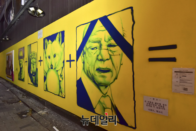 [포토] 다시 그려진 대선후보 풍자 벽화