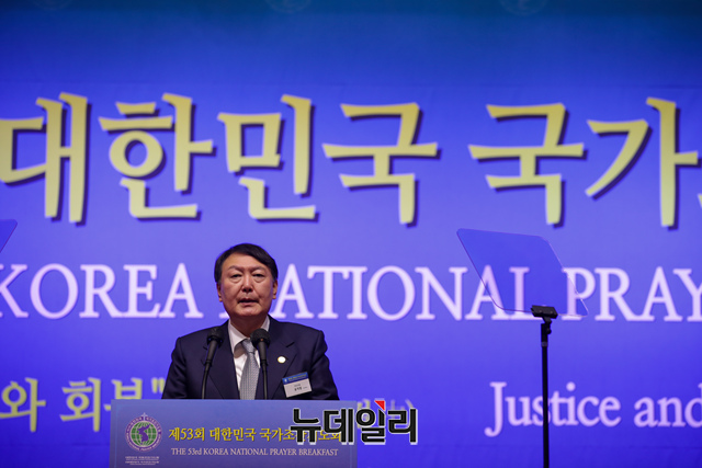 [포토] 대한민국 국가조찬기도회 참석한 윤석열