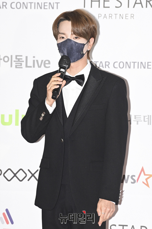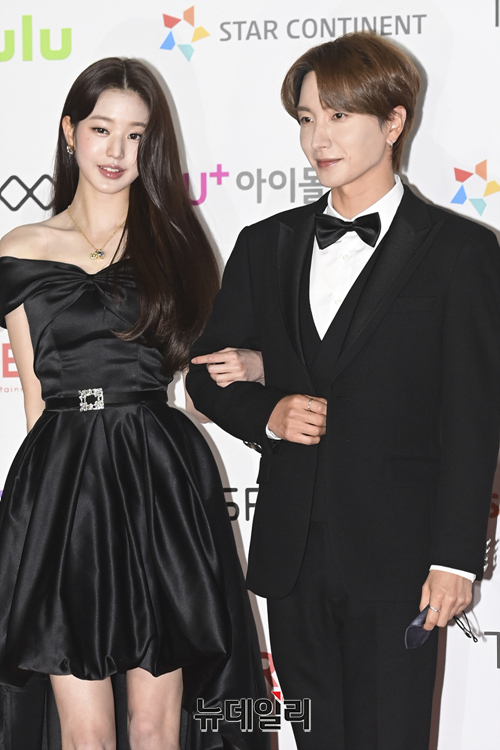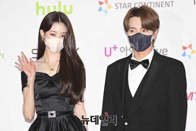 가수 이특과 장원영이 2일 오후 서울 강서구 KBS 아레나홀에서 열린 '2021 아시아 아티스트 어워즈(2021 Asia Artist Awards)'에서 포즈를 취하고 있다.