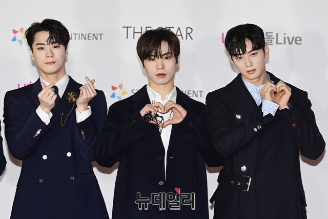 아스트로(차은우, 문빈, MJ, 진진, 라키, 윤산하)가 2일 오후 서울 강서구 KBS 아레나홀에서 열린 '2021 아시아 아티스트 어워즈(2021 Asia Artist Awards)'에서 포즈를 취하고 있다.'2021 AAA'는 올해 6회를 맞은 시상식으로 한 해 동안 아시아를 넘어 국내를 빛낸 가수들과 연기자들을 시상하는 국제적인 아티스트 축제다.