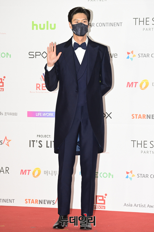 배우 나인우가 2일 오후 서울 강서구 KBS 아레나홀에서 열린 '2021 아시아 아티스트 어워즈(2021 Asia Artist Awards)'에서 포즈를 취하고 있다.