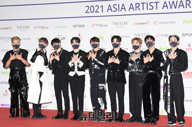 다크비(이찬, D1, 테오, GK, 희찬, 룬, 준서, 유쿠, 해리준)가 2일 오후 서울 강서구 KBS 아레나홀에서 열린 '2021 아시아 아티스트 어워즈(2021 Asia Artist Awards)'에서 포즈를 취하고 있다.