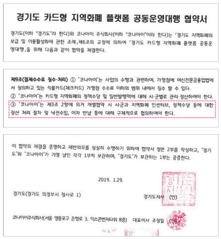 양금희 의원 '경기도 지역화폐 2019년 협약서' 공개…'경기도지사 이재명' 직인 찍혀낙전수입·이자반납, 경기도에 귀속하지 않고 "코나아이 협의"… 이례적 규정대장동 개발 특혜 의혹 쏟아지자… 경기도, 올해 11월 '지자체 귀속'으로 내용 고쳐