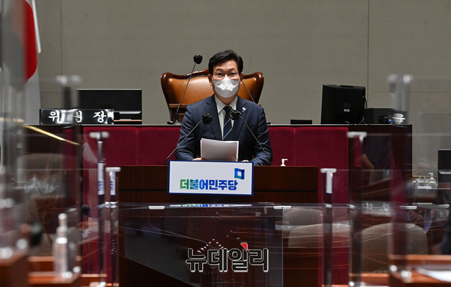 송영길 더불어민주당 대표가 6일 오후 국회에서 열린 정책의원총회에서 모두발언 하고 있다. (사진=공동취재단)