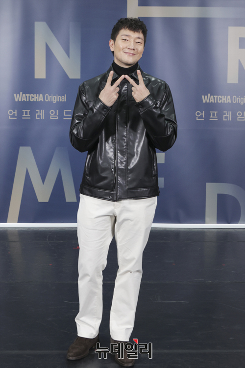 배우 손석구가 6일 오전 온라인으로 열린 왓챠 오리지널 단편영화 프로젝트 '언프레임드(감독 겸 배우 박정민, 손석구, 최희서, 이제훈)' 제작발표회에서 포즈를 취하고 있다.