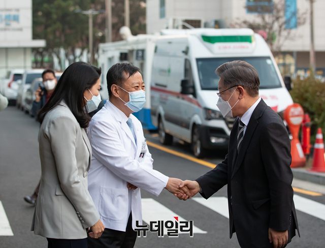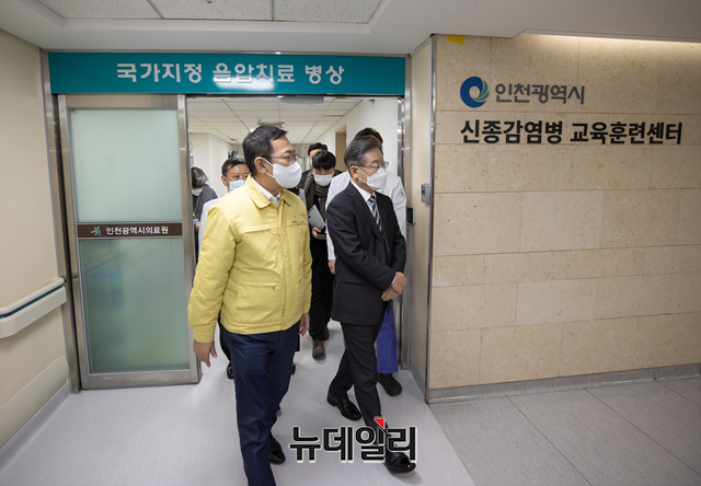 [포토] 인천의료원 음압병동 찾은 이재명 후보