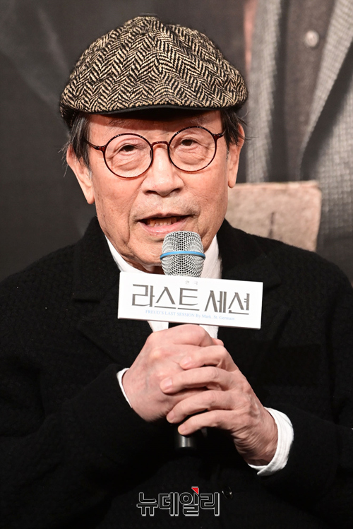 지그문트 프로이트 역을 맡은 배우 신구가 8일 오후 서울 종로구 예스24스테이지에서 열린 연극 '라스트 세션(연출 오경택)' 기자간담회에서 발언하고 있다.