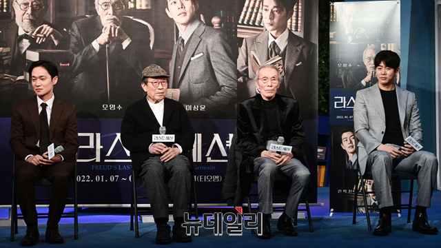 배우 전박찬, 신구, 오영수, 이상윤(왼쪽부터)이 8일 오후 서울 종로구 예스24스테이지에서 열린 연극 '라스트 세션(연출 오경택)' 기자간담회에 참석해 있다.