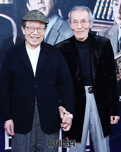 배우 신구(왼쪽), 오영수가 8일 오후 서울 종로구 예스24스테이지에서 열린 연극 '라스트 세션(연출 오경택)' 기자간담회에서 포즈를 취하고 있다.