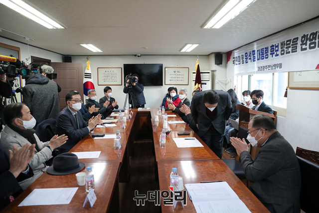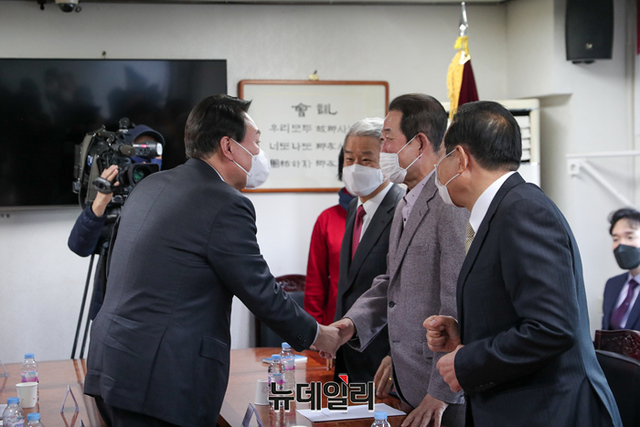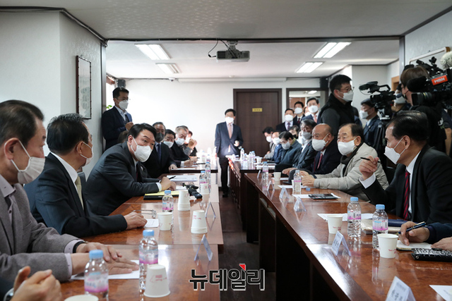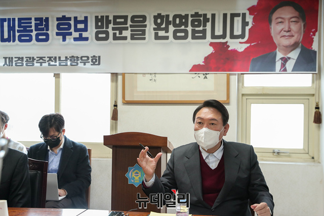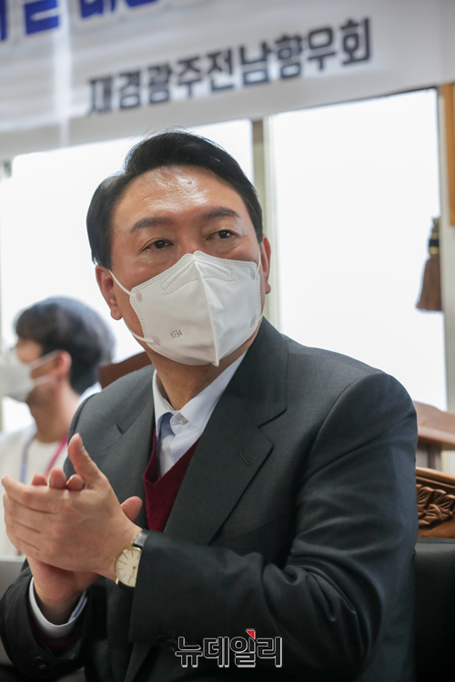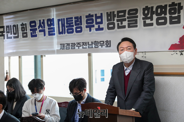 윤석열 국민의힘 대선후보가 8일 오전 서울 서초구 재경광주전남향우회를 찾아 초청 간담회를 갖고 있다. (사진=윤석열 캠프)