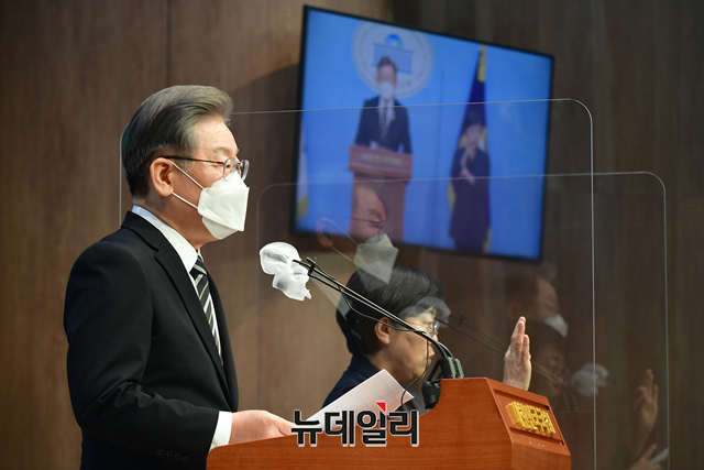 [포토] 감염병대응정책관련 긴급 기자회견 갖는 이재명 후보