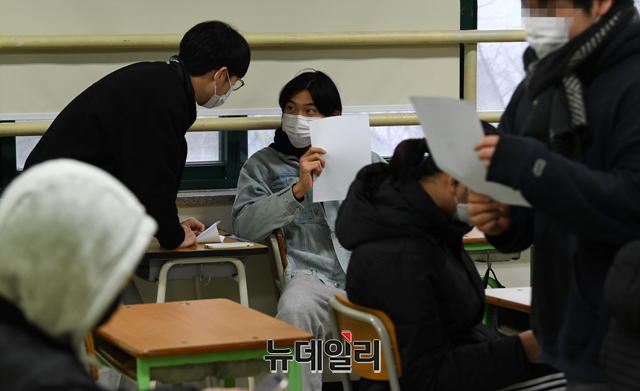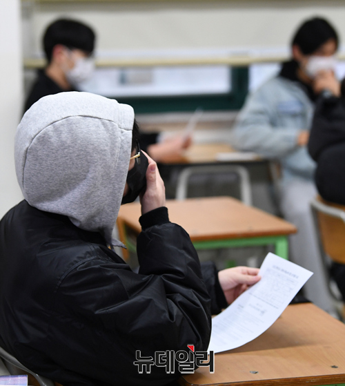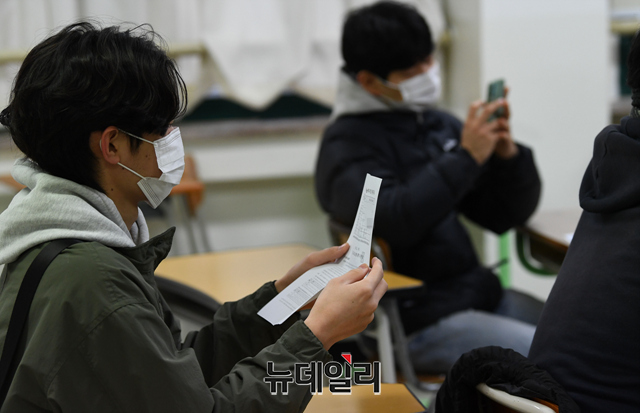 2022학년도 대학수학능력시험(수능) 성적표 배부일인 10일 오전 서울 종로구 경복고등학교에서 수험생이 성적표를 확인하고 있다.