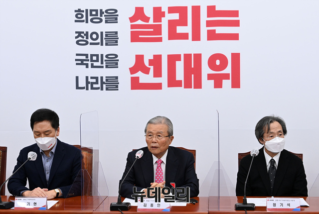 김종인 국민의힘 총괄선거대책위원장이 10일 국회에서 열린 코로나위기대응위원회 1차 회의에 참석, 모두발언을 하고 있다. (사진=공동취재단)