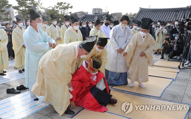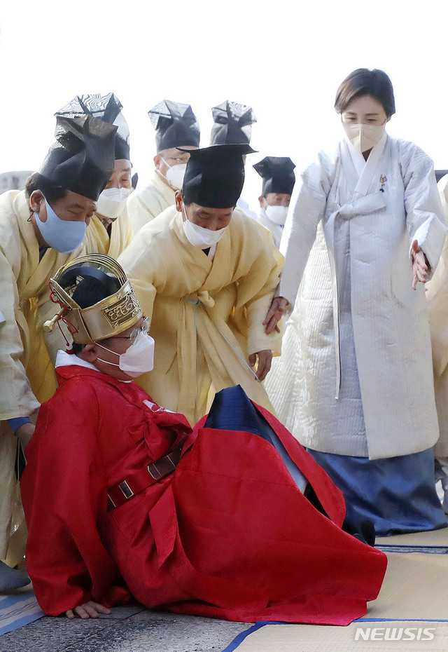 [포토] 제례복 입고 절하다가… 경주 표암재에서 주저앉는 이재명