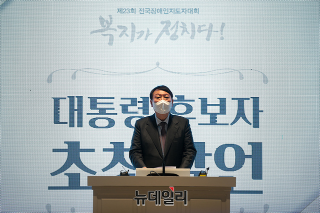 [포토] 전국장애인지도자대회서 안철수 대표 만난 윤석열