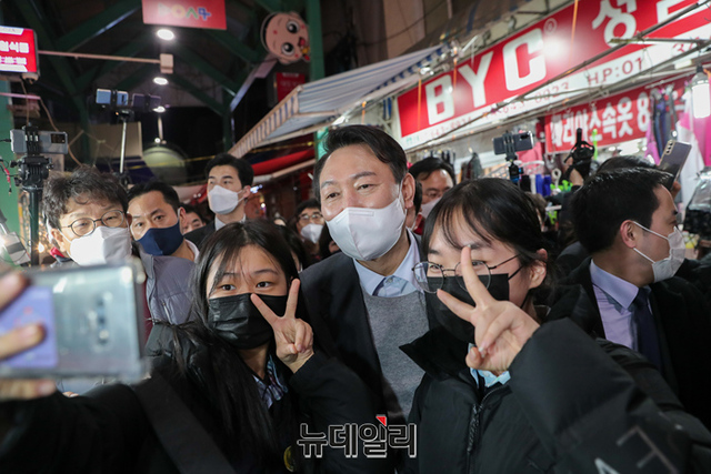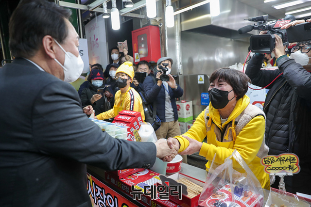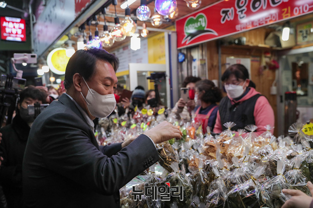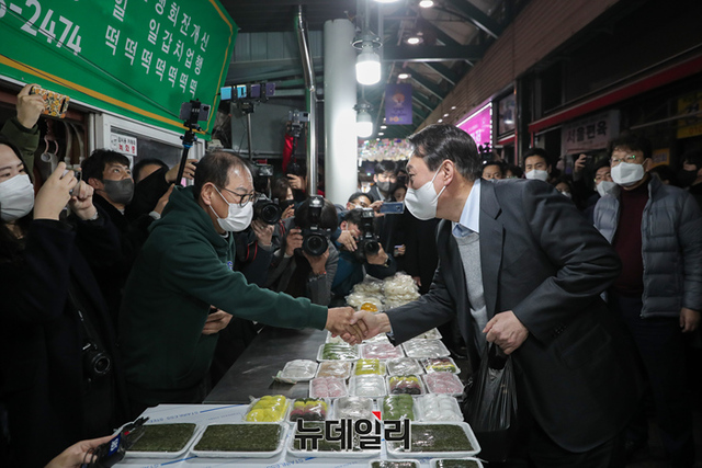 [포토] 강릉중앙시장 찾은 윤석열 국민의힘 대선 후보