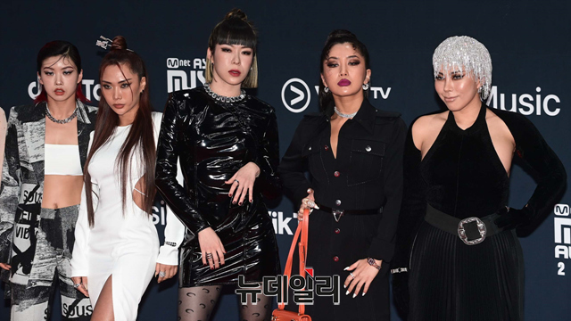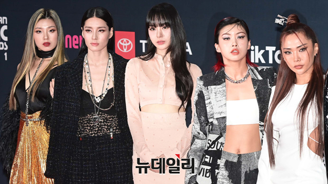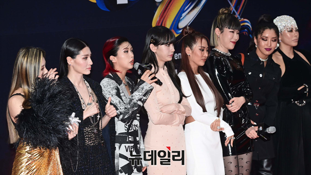 스트릿 우먼 파이터 리더 8인이 11일 오후 경기 파주시 CJ ENM 스튜디오 센터에서 열린 '2021 엠넷 아시안 뮤직 어워즈(2021 MAMA)' 레드카펫에서 포즈를 취하고 있다.올해 23회를 맞은 '2021 MAMA'는 매년 세계 각국의 아티스트가 참여하는 K-POP 음악 시상식이다. 행사 주제는 다름의 가치를 존중하고 편견을 깨 음악의 힘을 세상에 전달하는 뜻을 다뤘다.