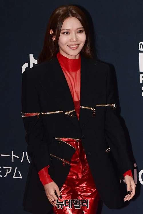 가수 겸 배우 최수영이 11일 오후 경기 파주시 CJ ENM 스튜디오 센터에서 열린 '2021 엠넷 아시안 뮤직 어워즈(2021 MAMA)' 레드카펫에서 포즈를 취하고 있다.